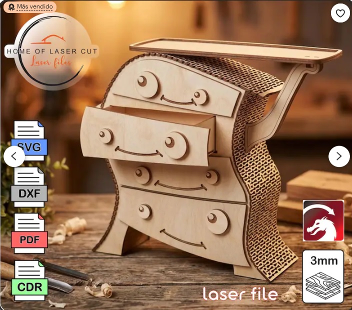 Un diseño que entra por los ojos y se queda en la memoria. Este cajón organizador con estilo divertido combina funcionalidad y carácter, ideal para joyería, escritorio o decoración. Un modelo que llama la atención, se arma con facilidad y tiene alto potencial de venta por su estética única.