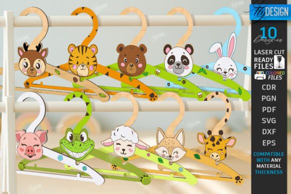 Perchas armador clavijero gancho colgadores Infantiles en Forma de Animales – Archivos Láser Listos para Cortar (10 Diseños)