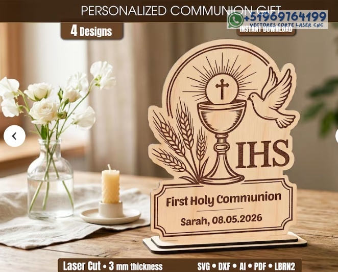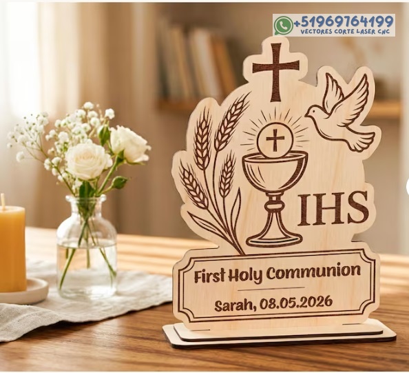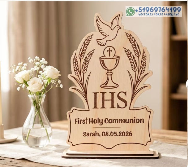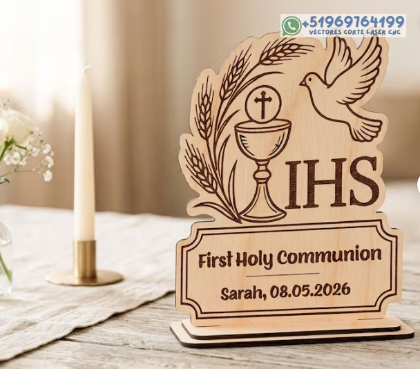 Esta placa de Primera Comunión personalizada captura la esencia de una fecha única, transformándola en un recuerdo eterno lleno de significado.