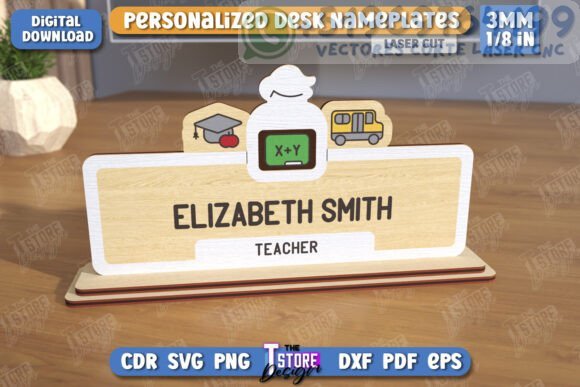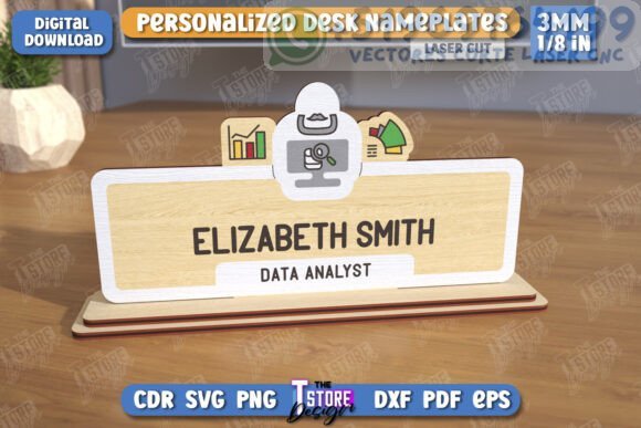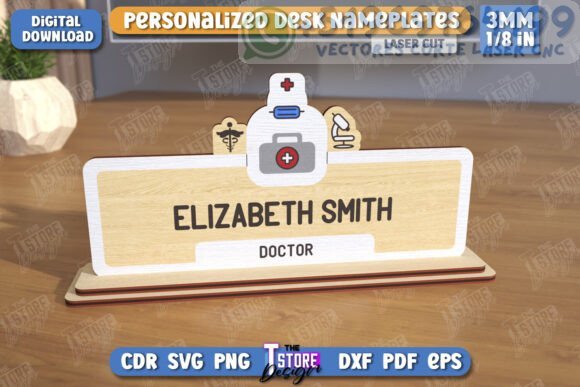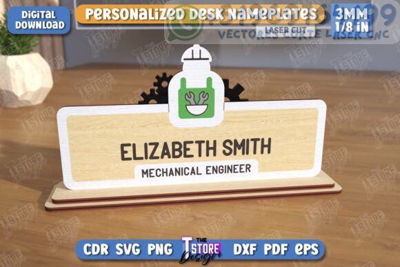 Haz que tu espacio de trabajo destaque con este paquete de placas personalizadas para escritorio, diseñadas especialmente para corte láser. Perfectas para oficinas, escritorios de home office o como regalos únicos para colegas.