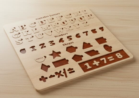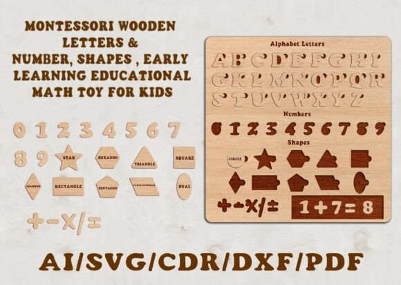 Plantilla Montessori de Letras, Números y Figuras para Corte Láser – Juguete Educativo