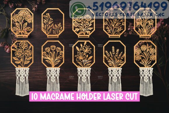 Eleva la elegancia de tus creaciones con este exquisito paquete de porta macramé florales listos para corte láser. Cada diseño está pensado para armonizar con la textura del hilo y aportar un toque natural y decorativo a tus espacios.