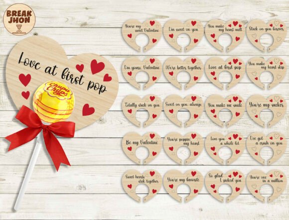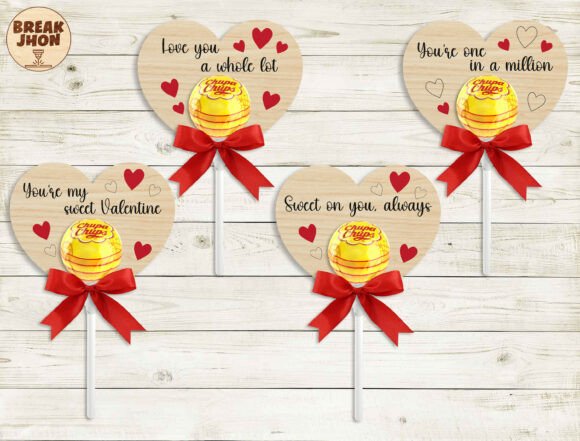 Este diseño transforma una simple piruleta en un detalle emotivo, combinando madera, forma y mensaje en una sola pieza.