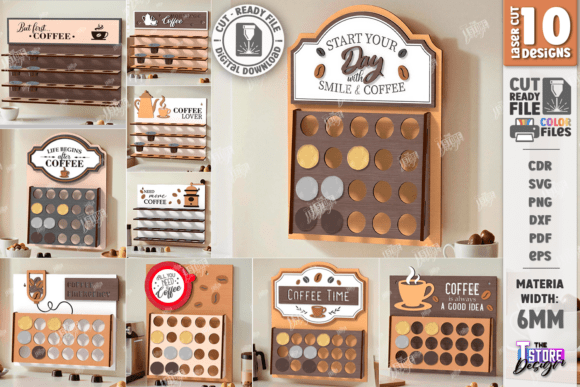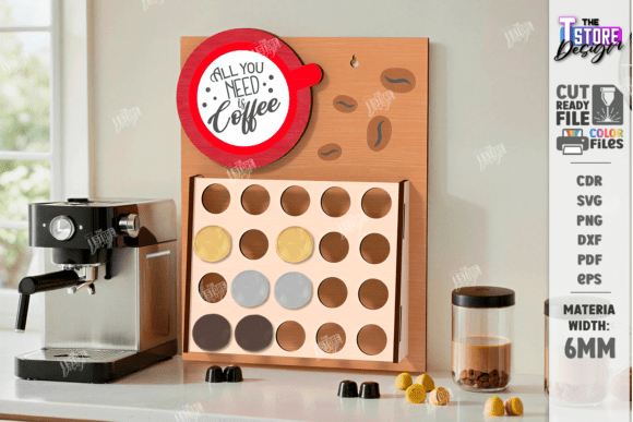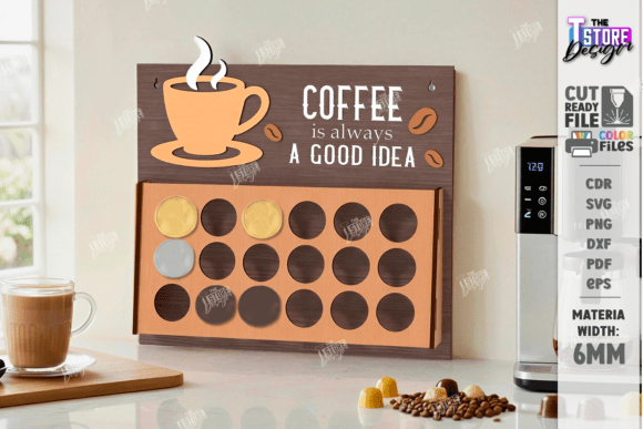 Cada modelo está optimizado para corte láser, con perforaciones precisas para cápsulas, estructura firme y acabados limpios. Ideal para cocinas, cafeterías, oficinas o proyectos artesanales con alto valor percibido.