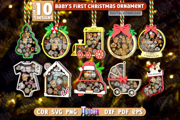 Celebra la primera Navidad de tu bebé con este adorable pack de adornos personalizados. Cada diseño ha sido creado con detalle para plasmar la ternura y magia de este momento tan especial. Perfectos para cortar en láser y convertir en recuerdos inolvidables.