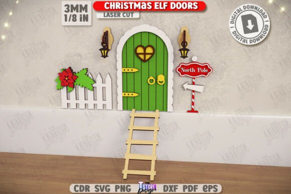Puertas de Elfos Navideños – Paquete de 10 Diseños para Corte Láser