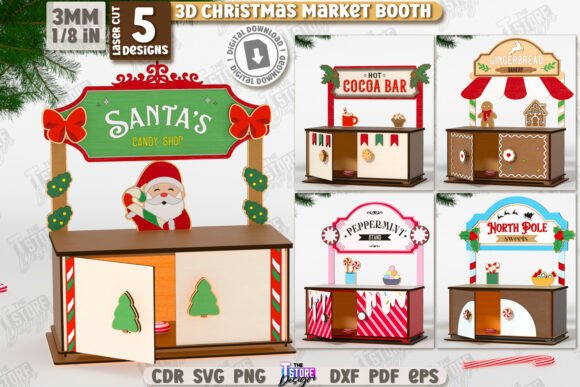Crea un ambiente mágico y lleno de encanto con este paquete de 5 puestos navideños 3D en madera, listos para corte láser. Perfectos para decorar tu hogar, vitrinas, ferias o mercados de Navidad, cada diseño está cuidadosamente elaborado para capturar la esencia de la temporada.