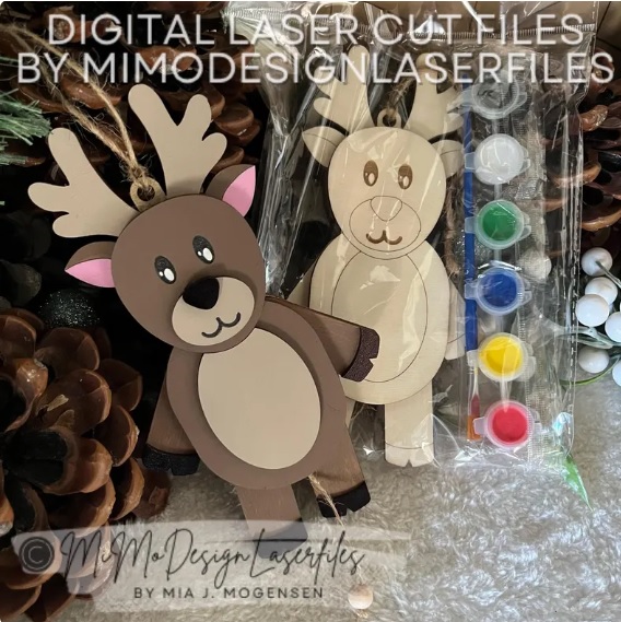 Dale vida a tu decoración navideña con este adorable Reno Jumping Jack articulado para corte láser, un diseño divertido y fácil de ensamblar que encantará a grandes y pequeños. Su estructura móvil permite que el reno se mueva al tirar de su cuerda, creando un efecto animado perfecto para colgar en el árbol, en puertas o en cualquier rincón del hogar.