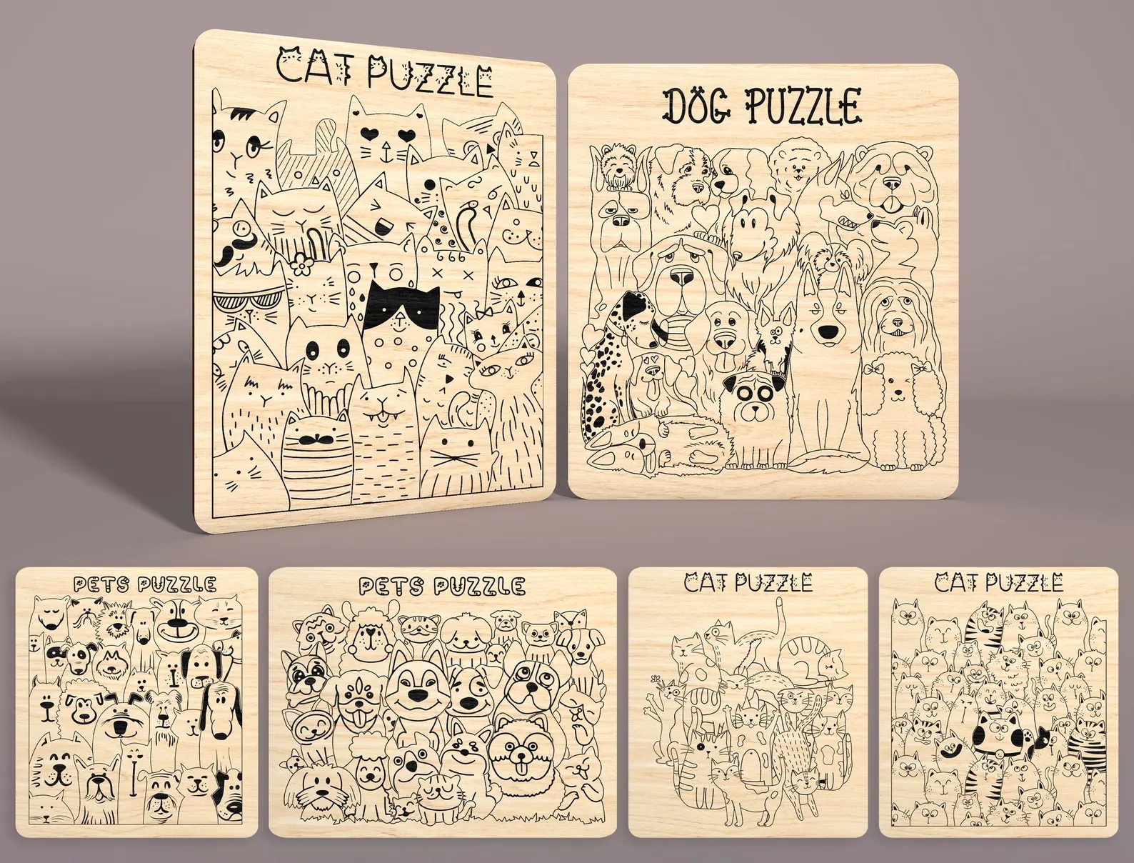 Estimula la creatividad y la motricidad fina con este encantador set de rompecabezas de gatos, perros y mascotas. Diseñados para cortar en madera o MDF, estos archivos digitales están listos para transformar tu taller en una fábrica de sonrisas.