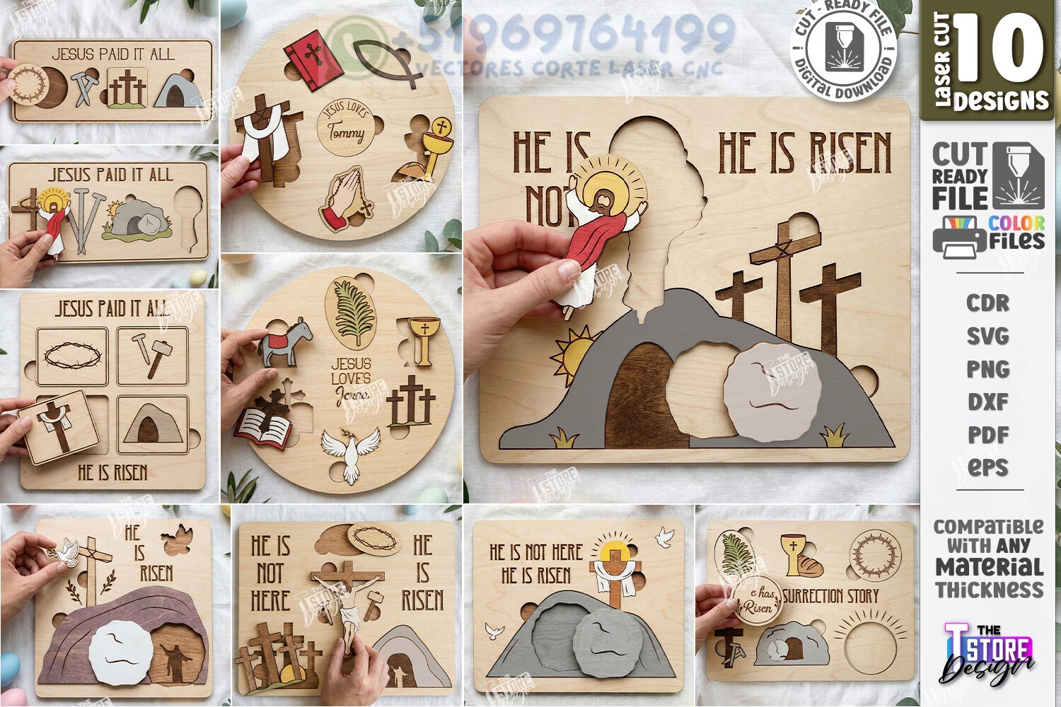 Rompecabezas cristiano de Pascua para corte láser en MDF. Diseño interactivo “He Is Risen” en DXF y SVG ideal para decoración religiosa y actividades didácticas.