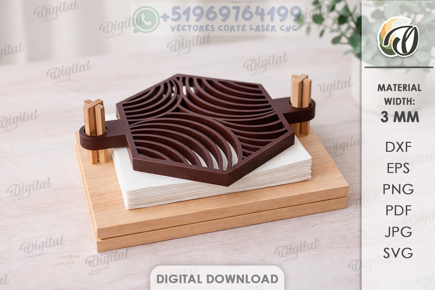 Servilletero de Madera con Diseños Decorativos – Pack de 10 Modelos para Corte Láser