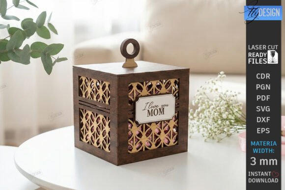 Este set de cajas decorativas “Love You Mom” ha sido diseñado para crear cajas de regalo elegantes mediante corte láser, ideales para sorprender en el Día de la Madre, cumpleaños o ocasiones especiales.