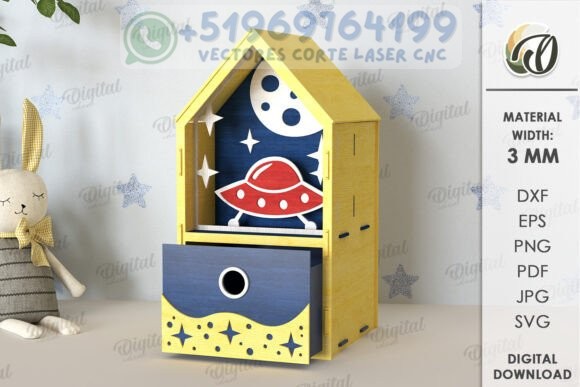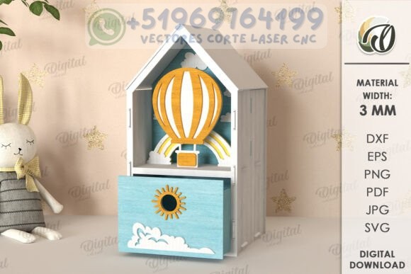 Decora espacios infantiles con encanto y funcionalidad gracias a este paquete de casas 3D con cajón integrado. Cada diseño incluye una temática única —desde cohetes espaciales hasta arcoíris y globos aerostáticos— ideal para estimular la imaginación de los más pequeños mientras organizan sus juguetes, lápices o tesoros.