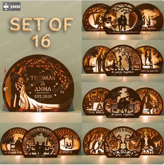 Celebra el amor y los momentos más importantes con este pack de linternas de aniversario personalizadas, ideal para corte láser. Cada diseño está lleno de detalles románticos, pensado para crear decoraciones cálidas, elegantes y con un toque artesanal único.