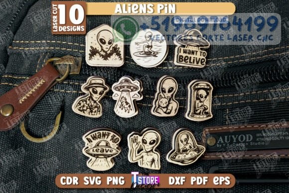 ¿Fan del misterio, lo alienígena y el diseño original? Este paquete de pines de extraterrestres para corte láser es ideal para ti. Incluye 10 diseños únicos para crear pines o llaveros con estilo retro, temático y fuera de este mundo.