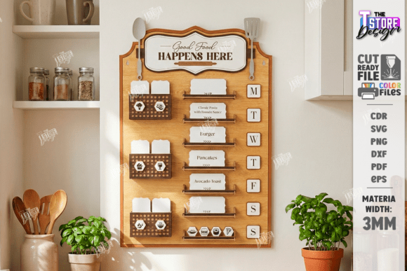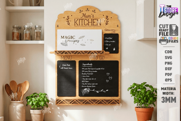 Este juego de tableros planificadores de menú semanal para cocina está diseñado para unir organización, diseño decorativo y funcionalidad diaria. Es ideal para hogares, cocinas familiares, emprendimientos artesanales y productos de decoración útil en madera.