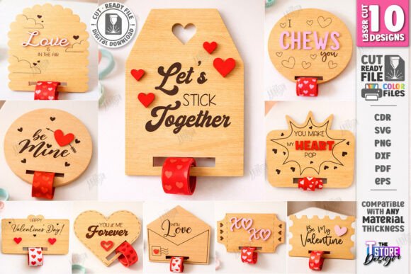 Cada pieza está optimizada para corte limpio y ensamblaje rápido. El soporte frontal mantiene la pulsera visible y ordenada, ideal para regalos, ventas por unidad o packs temáticos. Funcionan en madera, MDF o acrílico, y permiten personalización por color o grabado sin perder legibilidad.