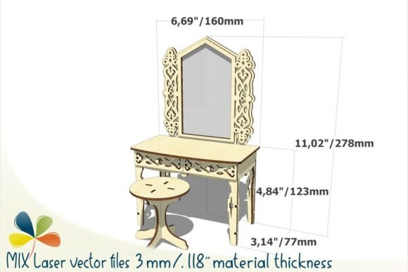 Este tocador de juguete con espejo para muñecas es una pieza encantadora que combina diseño, funcionalidad y creatividad. Ideal para crear muebles en miniatura con acabados elegantes, perfectos para juegos, decoración o proyectos artesanales.