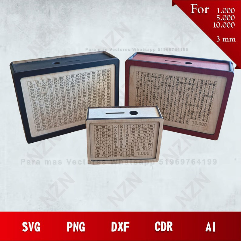 ransforma un simple pedazo de MDF en un producto educativo, decorativo y altamente vendible. Esta caja alcancía con panel numérico grabado es perfecta para retos de ahorro progresivo de 1.000, 5.000 y 10.000, ideal para niños, jóvenes y adultos que desean visualizar su meta financiera.