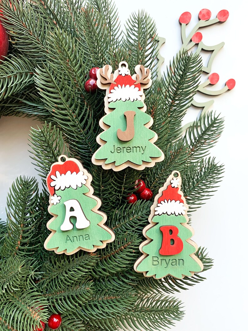 Decora tu árbol con un toque único gracias a este paquete de adornos navideños personalizados para corte láser. Con diseños en forma de pino navideño y letras iniciales, este set es perfecto para crear detalles únicos con el nombre de cada integrante de la familia.