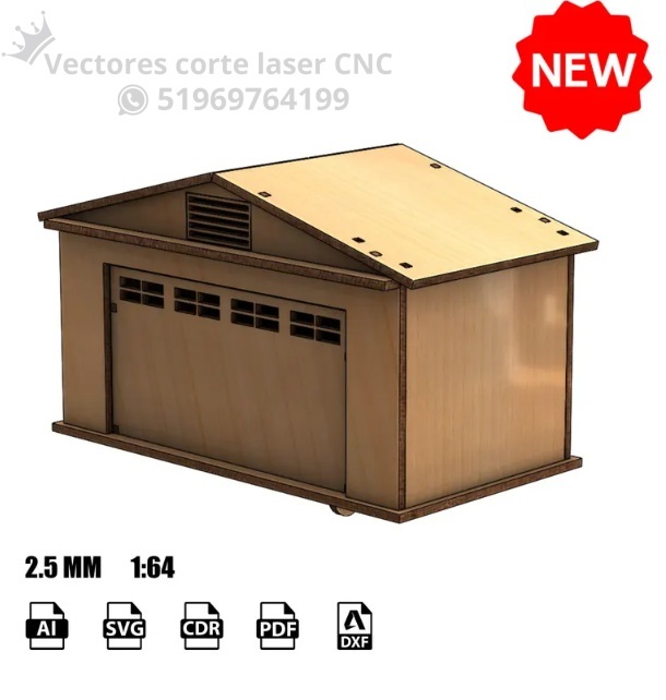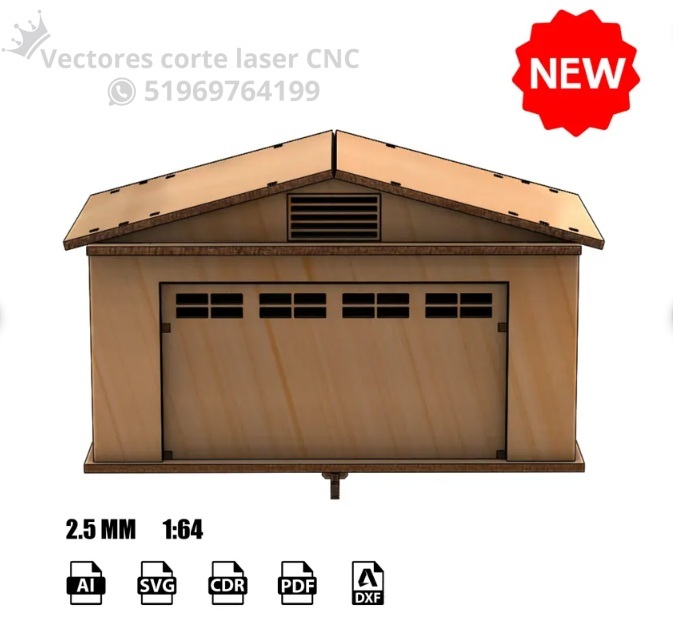 Lleva tus proyectos de modelismo a otro nivel con este diseño de garage realista en escala 1:64, ideal para complementar pistas de autos, dioramas, mini ciudades o sets de colección. Su estructura precisa y detallada está diseñada para cortar en madera MDF de 2.5 mm y ensamblarse fácilmente.